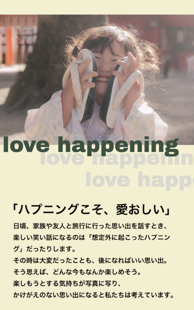 おじいさん、おばあさんになった時、この頃のことや家族の歴史についてお子さんやお孫さんに話すことがあるかもしれない。そんな時に誇らしく見せてあげられる「私たちの人生を代表するような写真」を残したいと思っています。